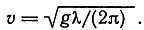Заметим, что с такой скоростью распространяются волны лишь на «глубокой воде», когда глубина h много больше λ. В случае же «мелкой воды» (когда h =< λ) скорость волны зависит лишь от глубины: