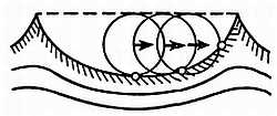 В 1802 г. чешский ученый Франтишек Иозеф Герстнер (1756–1832) нашел точное и простое решение уравнений, описывающих волны на воде. В волне Герстнера (рис. 20), которая образуется на «глубокой воде» (когда длина волны много меньше глубины сосуда) частицы жидкости движутся по окружностям. Эта волна не синусоидальна, колебания частиц воды не являются гармоничными.