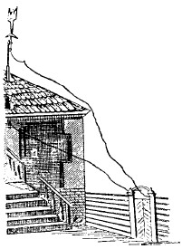 Ломоносов писал о двух способах защиты от грозы. Первый заключался в сооружении на пустырях и на крышах зданий тщательно изолированных от земли «электрических стрел» – «дабы ударяющая молния больше на них, нежели на головах человеческих и на храминах, силы свои изнуряла».