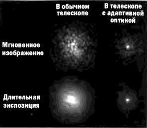 Система адаптивной оптики — это автоматическая система, предназначенная для исправления в реальном времени атмосферных искажений изображения, построенного телескопом. Сейчас системы адаптивной оптики применяются в оптических и инфракрасных теле скопах наземного базирования для увеличения четкости изображения. Они особенно необходимы также для работы астрономических интерферометров, используемых для измерения размеров звезд и поиска их близких спутников, особенно планет. Системы адаптивной оптики имеют и неастрономические приложения: например, когда требуется наблюдать форму искусственных спутников Земли с целью их опознания. Разработка систем адаптивной оптики началась в 1970–е гг. и приобрела особый размах в 1980–е гг. в связи с программой «звездных войн», включавшей разработку лазерного противоспутникового оружия наземного базирования. Первые штатные системы адаптивной оптики начали работать на крупных астрономических телескопах в районе 2000 г.