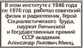 Эту мемориальную доску и имя академика А.Л. Минца Радиотехнический институт получил в 1985 году, спустя 11 лет после смерти А.Л. Минца. По советским понятиям то было не типовое – номенклатурное – «увековечивание имени» сразу после кончины. В данном случае инициатива исходила не из номенклатурных верхов, а из недр института, где любовь и уважение к первому директору пережили нескольких его преемников.