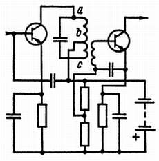 В каскадах ВЧ эти контуры имеют переменную настройку, что позволяет настраивать приемник на соответствующую радиостанцию. В каскадах ПЧ настройка постоянная. Здесь также возникает проблема согласования выходных и входных сопротивлений. Решить эту проблему удается путем использования трансформаторов с коэффициентом трансформации, соответствующим соотношению этих сопротивлений. Для этой цели можно сделать отводы в одной из обмоток, которая ведет себя как автотрансформатор. Часть обмотки, по которой протекает входной ток, играет роль первичной обмотки, а вся обмотка представляет собой вторичную обмотку. На схеме, которую ты видишь, часть витков с отводами а, b служит первичной, а с отводами а, с — вторичной обмоткой трансформатора. А настоящая вторичная обмотка подвергается индуктивному воздействию всей первичной обмотки.
