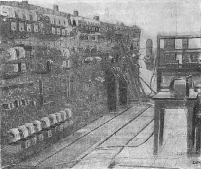Человеческие мускулы с этой колоссальной работой справиться не могут. Тут не обойтись без машины. И наш Харьковский электромеханический завод сконструировал замечательный доменный подъемник, загружающий в домну пять поездов шихты с такою же легкостью, как домашняя хозяйка засыпает в трубу самовара полкило угля.