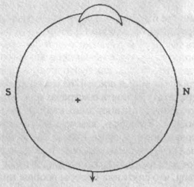 Рис. 61. Неизвестный объект (крестик) возле серпа Венеры в поле зрения гигантского рефрактора Ликской обсерватории 13 августа 1892 г. (рисунок признанного мастера астрономических наблюдений Э.Э. Барнарда).