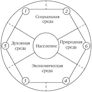 Внутреннее строение территориально–общественных систем отражено на рис. 1.2. Ядром в системах является население и отдельный человек – главный производитель и потребитель материальных и духовных благ. Жизнь людей включает в себя труд, быт, отдых и протекает в природной, экономической, социальной и духовной средах.