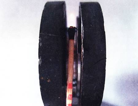 Красная спичка горела и остывала в магнитном поле. Зеленая — вне его. Как видите, красная спичка реагирует на магнит.