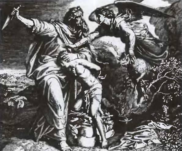 АВРААМ ПРИНОСИТ В ЖЕРТВУ ИСААКА. ЗДЕСЬ И ДАЛЕЕ – ГРАВЮРЫ НА ДЕРЕВЕ ИЗ ИЛЛЮСТРАЦИЙ К БИБЛИИ ХУДОЖНИКА XIX ВЕКА ЮЛИУСАШНОРРФОН КАРОЛЬСФЕЛЬДА (ИЗ КНИГИ «ИОСИФФЛАВИЙ. ИУДЕЙСКИЕ ДРЕВНОСТИ». С-ПЕТЕРБУРГ, 1900)