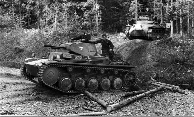 Танки Pz.II Ausf.B из состава 40-го батальона специального назначения. Норвегия, апрель 1940 года.