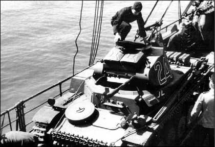 Начало операции Sonnenblume («Подсолнечник») — погрузка на суда танков Африканского корпуса для доставки в Триполи. Неаполь, весна 1941 года. На фото — прошедший модернизацию Pz.II Ausf.C.