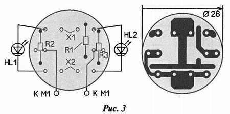 Чертёж односторонней печатной платы из стеклотекстолита толщиной 1,5 мм показан на рис. 3.