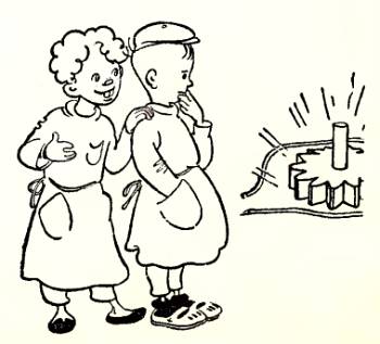 «Стук, стук, стук», — раздается в цехе. Это стучат большие машины — прессы. Каждую секунду пресс ударяет о полосу, вырубая из нее крохотные колесики. Работница едва успевает протаскивать длинную ленту. Вот уже появился конец ее. Пресс остановлен, работница, взяв ленту за край, сбрасывает готовые заготовки в ящик.