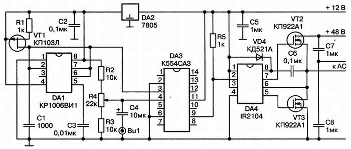 Рис. 4.7. Принципиальная схема с выходным каскадом на полевом транзисторе