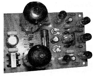 Пилообразный сигнал подается на триггер Шмитта, собранный на двух половинках лампы Л5, на этот же вход подается сигнал от предварительного усилителя НЧ, собранного на пеноде Л4. С выхода триггера Шмитта противофазные сигнал поступают на управляющие сетки двухтактного выходного каскада на лампе Л4. Нагрузкой лампы Л4 является импульсный трансформатор, за которым через высокочастотный фильтр включен обычный двухтактный выходной трансформатор.
