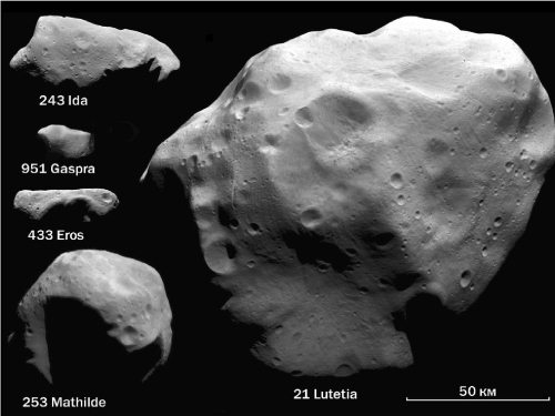 Рис. 7.5. Некоторые из астероидов, с которыми к середине 2010 г. сближались космические зонды. Все снимки в одном масштабе. Фото: NASA, ESA.