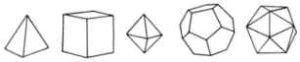 Вся штука вот в чем. На двухмерной плоскости можно создать любое количество правильных многоугольников; но вот в трехмерном пространстве можно сконструировать ограниченное число правильных тел. Этими "совершенными телами", в которых все грани идентичны являются: (1) тетраэдр (пирамида), ограниченный четырьмя равносторонними треугольниками; (2) куб; (3) октаэдр (восемь равносторонних треугольников); (4) додекаэдр (двенадцать пятиугольников) и (5) икосаэдр (двадцать равносторонних треугольников).