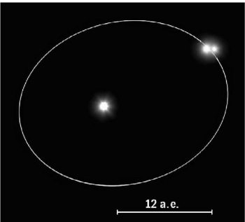 Рис. 6.10. Схема тройной звезды HD 188753. Рядом с более крупным одиночным компонентом, возможно, движется планета-гигант. Если ее существование подтвердится, это станет проблемой для теории формирования планет.
