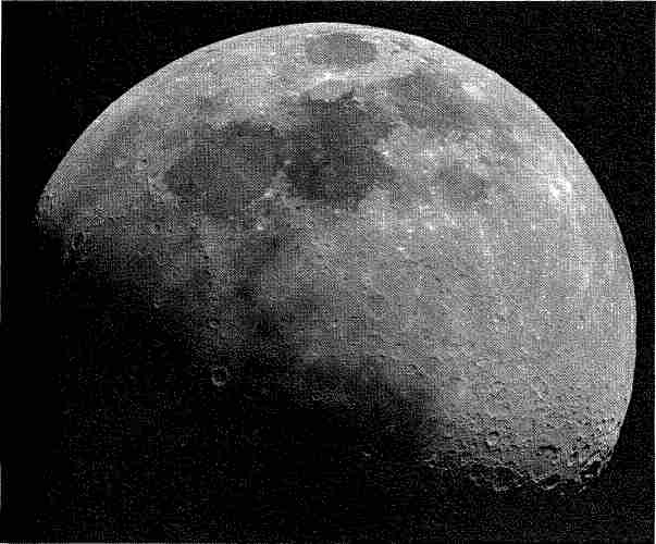 Выберите момент, близкий к полнолунию. Во — первых, вы увидите освещенным почти весь лунный диск. А во — вторых, наблюдать другие объекты в такую ночь почти не имеет смысла: яркий свет полной Луны подавляет слабое свечение звезд и планет. Чтобы быть точным, скажу, что полная Луна в зените создает на поверхности Земли освещенность в 0,25 лк, при которой без труда можно читать крупный типографский шрифт. А безлунное звездное небо освещает Землю с интенсивностью всего лишь в 0,001 лк, то есть в сотни раз слабее.