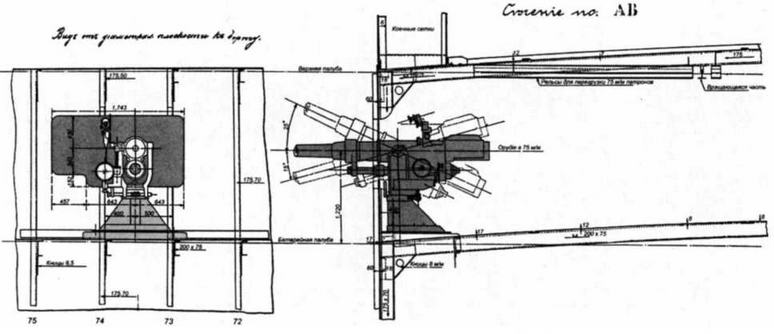 2. Установка 75 мм /50 орудия на бортовом станке А.П. Меллера в каземате крейсеров типа «Баян».