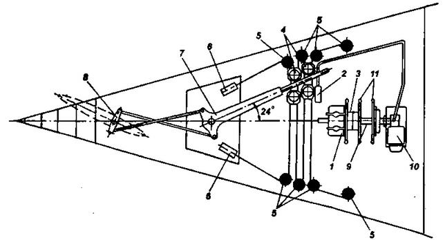1 - Бортовой мусорный рукав. Загрузочное отверстие расположено на верхней палубе в коечных сетках. Из загрузочного бачка содержимое по вертикальной трубе диаметром 350 мм выводится за борт через отверстие в 60 мм бортовой броне над нижней палубой.