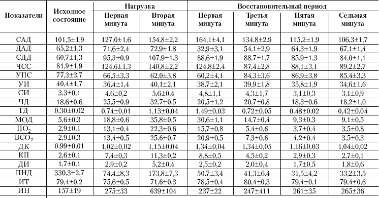 Динамика показателей кровообращения и дыхания при мышечной нагрузке аэробно-анаэробной мощности