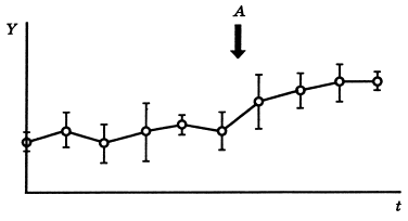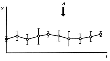 Рис. 22. Очевидно, что фактор A не вызывает статистически значимого изменения параметра Y (по крайней мере – в течение заданного времени t)