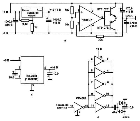 Рис. 17.11. Варианты организации отрицательного напряжения питания для 572ПВ2