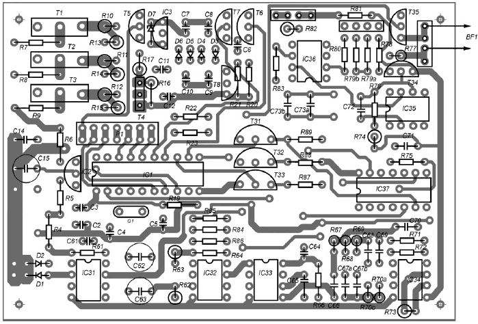 Рис. 3.20. Печатная плата усовершенствованного импульсного металлоискателя