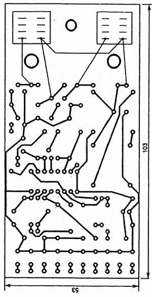 Рисунок печатной платы и расположение деталей показаны на рис. 12 а, б.