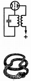 Эта обратная связь неизменно заставляет меня думать о змее, кусающей себя за хвост… И я помню, что обратная связь позволяет увеличить коэффициент усиления, повышая тем самым чувствительность приемников. И если еще увеличить обратную связь, то начинается генерирование колебаний. Это явление используется не только в передатчиках для создания несущих токов ВЧ, но и в супергетеродинных приемниках для преобразования частоты посредством биений с токами, принятыми антенной.