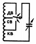 Л. — Поверь мне, в каждой области радиотехники есть немало сложных проблем. Так, желание принимать в нескольких диапазонах волн обязывает иметь столько же разных индуктивностей в схемах настройки ВЧ, включая и схему гетеродина в каскаде преобразователя частоты. Так, например, чтобы перейти с приема в диапазоне ДВ на прием в диапазонах СВ или КВ, нужен переключатель, позволяющий подключать к схеме соответствующие катушки. Можно установить несколько отдельных катушек, но чаще используют катушки, соединенные последовательно. Катушка, имеющая самое малое количество витков, служит для приема КВ; она же, соединенная последовательно со следующей катушкой, позволяет настроиться на СВ, а все три соединенные последовательно катушки используются для приема передач на ДВ.