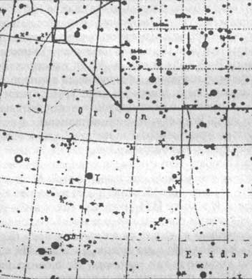 Рис. 42. Таинственная звезда HD 38451 (отмечена стрелкой) по неизвестной причине становилась то красной, то белой на глазах астрономов. Вел ли себя так же и Сириус?