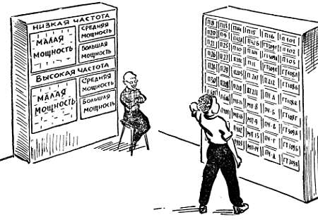 Внутри каждой группы целесообразно разделить транзисторы на низкочастотные (сплавные) и высокочастотные (диффузионные). И, наконец, для порядка следует ввести еще одно разделение транзисторов — в зависимости от их структуры (р-n-р или n-р-n) и исходного материала (германий или кремний). Как видите, получилось сравнительно небольшое число основных групп, и среди них четыре главные группы — маломощные транзисторы ВЧ и НЧ и мощные транзисторы ВЧ и НЧ. Это, конечно, грубое деление, не учитывающее многих важных показателей, однако же внутри каждой из четырех групп даже разные транзисторы очень часто могут заменять друг друга.