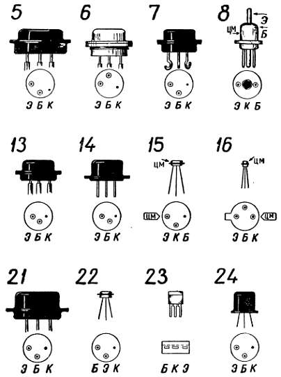 Рис. 95. Основные типы транзисторов (ЦМ — цветная метка).