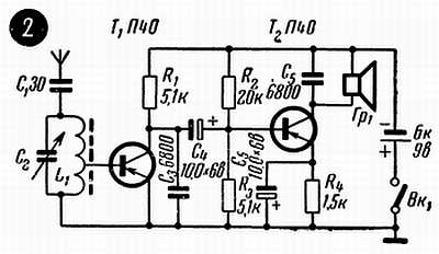 Лет десять назад, когда в продаже появились первые серийные транзисторы, многие любители начали строить карманные приемники. К тому времени в журнале «Радио» были опубликованы две-три схемы таких приемников, и именно они послужили основой для развития «приемниковой лихорадки». Причем большинство любителей просто копировало журнальные схемы, не отступая от них ни на шаг и даже в точности повторяя расположение деталей на монтажной плате.