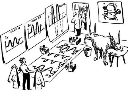 Мы с вами попробовали несколько подробней разобрать лишь один вопрос, мимо которого с легкостью прошли раньше, и, как видите, узнали немало интересных и важных подробностей о работе транзисторного каскада. Много важного и интересного можно было узнать, рассмотрев подробней и другие лишь слегка затронутые нами проблемы. Например, особенности работы транзистора на высоких частотах, влияние внутренних обратных связей, зависимость параметров транзистора от температуры и уровня сигнала, изменение параметров усилителя при смене транзистора, возникновение искажений в усилителях с отсечкой и многие другие. Одним словом, мы поднялись лишь на несколько ступеней по лестнице понимания транзисторных схем, и можно еще очень долго продолжать этот подъем, всякий раз открывая для себя новые горизонты.