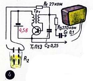 Если внимательно присмотреться к таблицам с данными транзисторов, то можно заметить, что многие разные типы приборов имеют довольно близкие параметры и предельные режимы, в то время как даже в пределах одного и того же типа транзисторов параметры могут заметно различаться. Все это говорит о том, что в случае необходимости можно довольно широко заменять один тип транзистора другим. Так, почти во всех схемах, о которых будет рассказано дальше, вместо транзисторов П13 можно применить любые другие маломощные транзисторы. Лишь в некоторых случаях при этом придется подогнать режим, заменив, например, резистор в цепи базы, через который подается начальное отрицательное смещение.