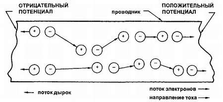 Рис. 2–3. Направление движения электронов противоположно направлению движения дырок.
