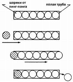 Рис. 2–4. Электроны в проводнике взаимодействуют подобно шарикам от пинг-понга в трубе.