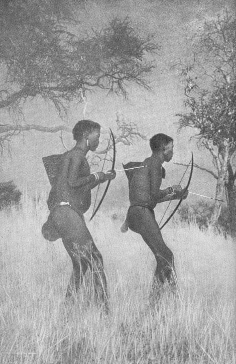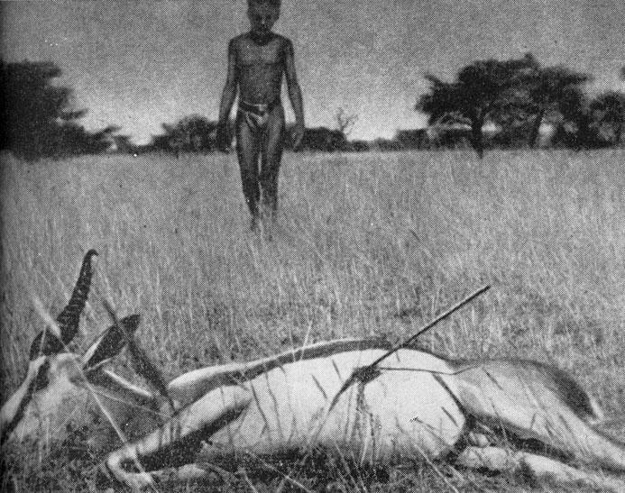 Покончив с очередной стрелой, Цонома клал ее на ладонь, называл животное, которое хотел бы убить ею, и погружался в размышления, как будто уже видел, как стрела поражает цель. После этого он втыкал ее в песок вверх наконечником и давал яду высохнуть. Цонома обмазал все стрелы и аккуратно завернул принадлежности. Ни женщины, ни дети не приближались к мужчинам, пока шла эта работа.