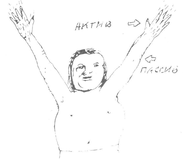 Теперь сделайте следующее: позвольте Вашим кистям расслабиться и повиснуть в запястьях. Обратите внимание на разность ощущений между кистью и всей рукой в целом.