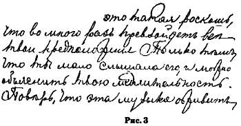 Подобное происходит и при истерии, когда дрожащий почерк является частым признаком воспаления мозга, причем наряду с дрожанием имеются еще следующие особенности: придуманная витиеватость отдельных букв (рис. 3),