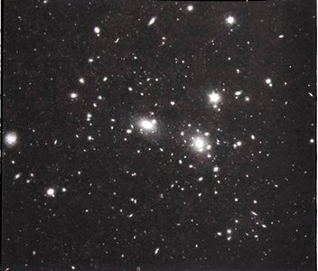 А можно ли объяснить большой разброс скоростей галактик без гипотезы о темной материи? В 1956 году армянский астроном Виктор Амазаспович Амбарцумян (1908–1996) из Бюраканской обсерватории близ Еревана предположил, что скопления галактик в целом могут находиться в состоянии расширения. В этом случае нет, необходимости в наличии большой массы темной материи. Однако позже наблюдения показали, что центральная область скопления Coma состоит из двух субскоплений. Эти два уплотнения из темной материи отмечены двумя ярчайшими галактиками с их спутниками. Они явно обращаются друг вокруг друга, как звезды в двойной системе, но в значительно большем масштабе.