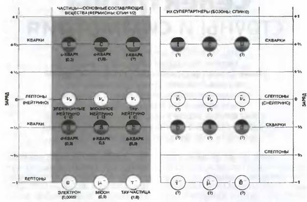 Наконец, теория струны тоже требует, чтобы мир был суперсимметричен. Ведь, согласно этой теории, все материальные и силовые частицы суть колебания одной и той же элементарной струны, а значит, в основе основ между этими типами частиц нет разницы: материальные частицы могут превращаться в силовые и наоборот. Следовательно, делают вывод теоретики, у каждой материальной частицы есть свой суперсимметричный двойник – некая силовая частица, и, соответственно, у каждой силовой частицы есть суперсимметричный материальный двойник. Это значит, что во Вселенной должно быть, по крайней мере, вдвое больше разновидностей частиц, чем известно исследователям.