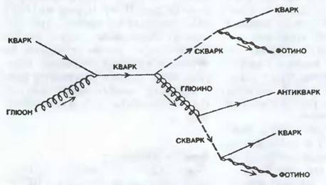 Протон-антипротонные столкновения могут привести к рождению суперсимметричных чостиц, например при соударении кварка из протона или антипротона с глюоном из другой частицы
