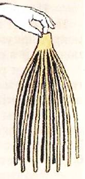 Я подал ножницы, и брат, прилепив газету к печке, стал отрезать от ее края, снизу вверх, длинную тонкую полоску. Не дойдя до самого верха, он таким же образом надрезал вторую полоску, потом третью… Шестую или седьмую полоску он отрезал совсем. Получилась бумажная «борода», которая, однако, не соскользнула с печки, как я ожидал, а осталась на ней. Придерживая верхнюю часть рукой, брат провел по полоскам несколько раз щеткой и затем снял всю «бороду» с печки, держа ее вверху в вытянутой вперед руке.