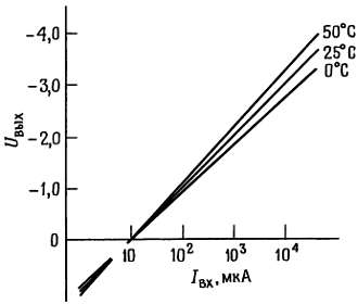 Промышленность выпускает несколько интегральных логарифмических преобразователей. Они обладают очень хорошими характеристиками и имеют внутреннюю температурную компенсацию. Среди фирм-изготовителей назовем Analog Devices, Burr-Brown, Philbrick, Intersil и National Semiconductor.