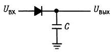 Во многих практических случаях требуется определить пиковое значение входного колебания. В простейшем случае для этой цели можно использовать диод и конденсатор (рис. 4.37).