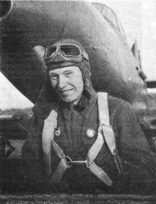 Гв. капитан А.И.Покрышкин, будущий трижды Герой Советского Союза и маршал авиации, у P-39D-2 (очевидно, 41-38520). 28.05.43 г., аэ Поповическая 16 гв. ИАП (55 ИАП)