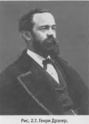 Американский врач, профессор естествознания Генри Дрэпер (1837–1882) построил частную обсерваторию с 71–сантиметровым рефлектором, зеркало для которого он шлифовал сам. На фотопластинках с мокрыми коллоидными эмульсиями Дрэпер одним из первых получил высококачественные фотографии Луны, Солнца и солнечного спектра (для этой цели он разработал точный механизм часового ведения телескопа). Он первым в 1872 г. получил спектр звезды — Веги. С 1879 г. он работал с сухими фотоэмульсиями и получил спектры ярких звезд, планет, комет и туманностей. После ранней смерти исследователя его вдова Анна Палмер-Дрэпер учредила денежный фонд, позволивший астрономам Гарвардской обсерватории создать фундаментальный каталог спектров звезд — знаменитый Дрэперовский каталог — и разработать Гарвардскую спектральную классификацию звезд, ставшую основой астрофизики.