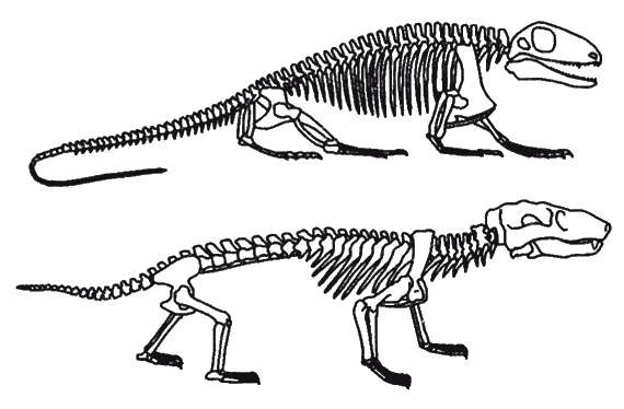 У наших предков терапсид смена положения конечностей сопровождалась их разворотом в противоположных направлениях: так плечевые кости расположились вдоль тела назад, а бедренные — вдоль тела вперед.